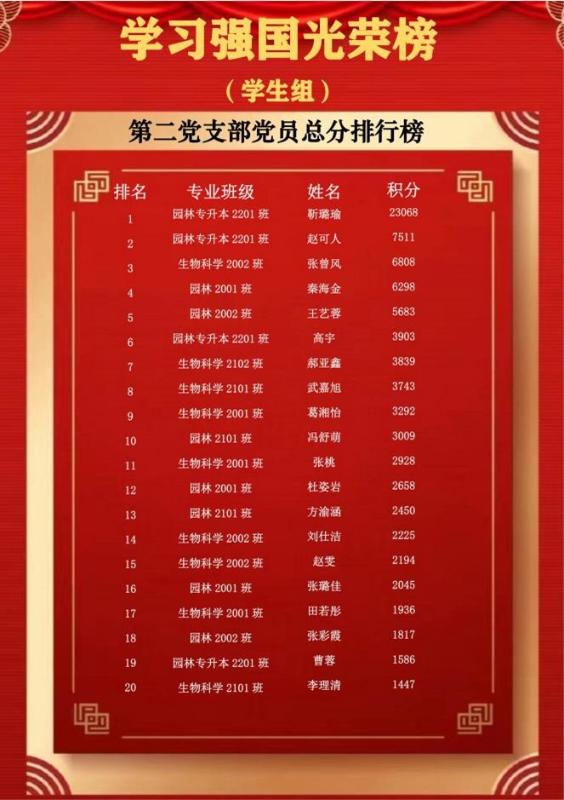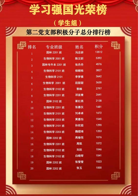 今天,小编要隆重向大家公布生命科学系2023年“学习强国”年度积分前90名“学习达人”榜单!