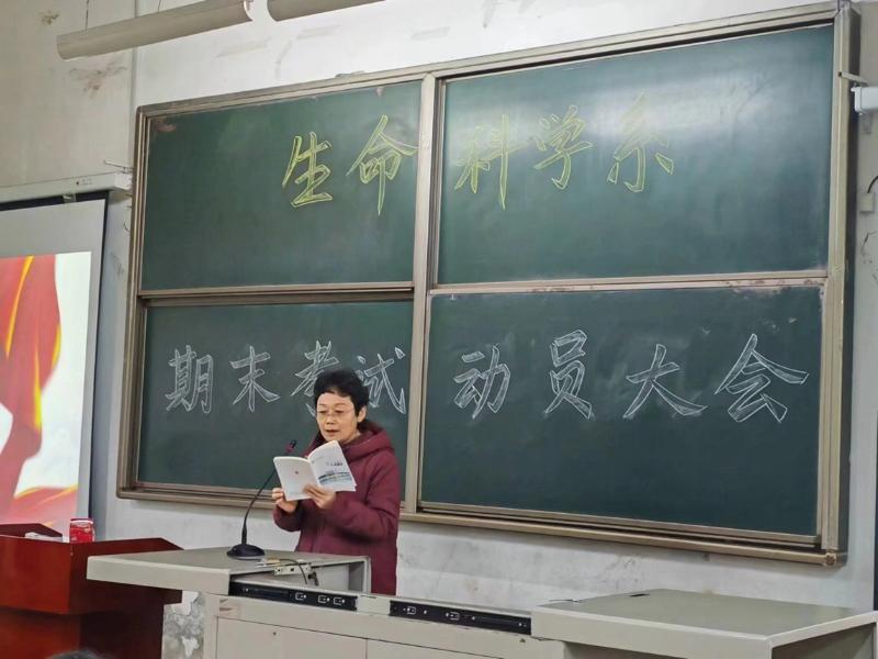 大会最后,冯老师再一次强调了“以诚应考”的重要性,并指出:考试是学生优化复习的最好策略、是学生查漏补缺的最好方式、是学生学习状态的最佳反馈、是学生心理状态的最佳磨练。因此,生科系全体师生应该共同努力,确保期末考试地顺利进行,以期真正达到“以考促学”的目标效果。