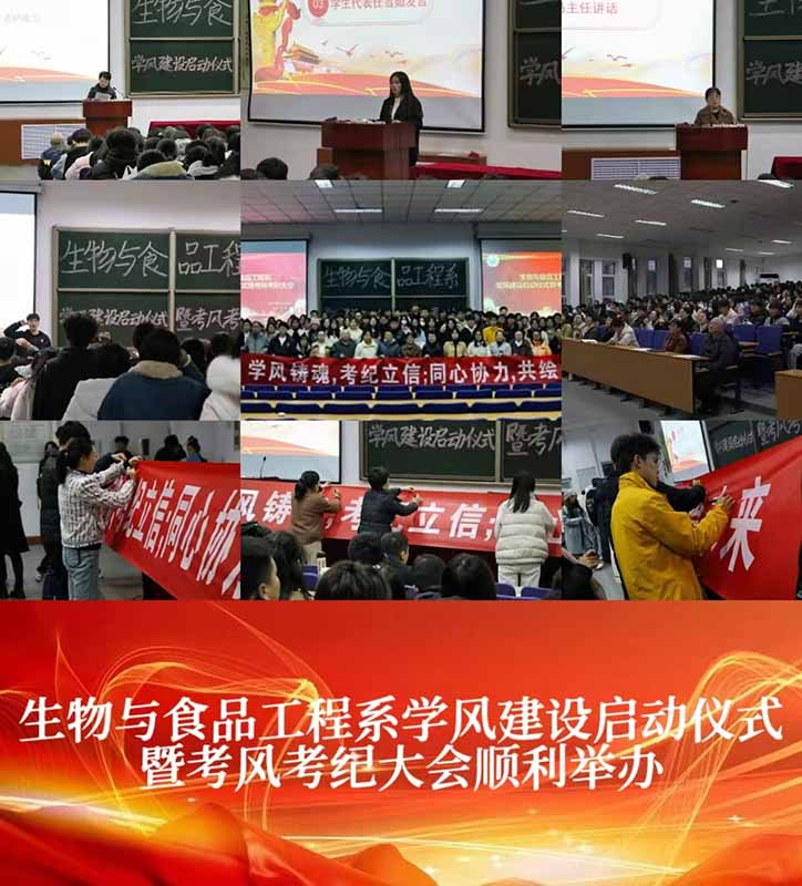 为进一步加强我系学风建设,激励广大学生积极向上、勤奋学习,营造良好学风、考风。2024年11月19日,生物与食品工程系在道德讲堂举行学风建设启动仪式暨考风考纪大会。在家班子成员、大一全体学生、大二班委、辅导员及学业班主任参加本次会议,会议由何佳洋同学主持。
