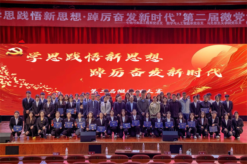 为深入贯彻落实习近平新时代中国特色社会主义思想,持续深化红色教育,全面筑牢理想信念根基,4月28日,马克思主义学院党总支、生物与食品工程系党总支、数学与人工智能系党总支、化工与材料工程系党总支四院系联合举办“学思践悟新思想 踔厉奋发新时代”主题微党课比赛。比赛以微党课形式,讲党的理想信念、初心使命和优良传统,讲党的红色故事,带来了一场有党味、有温度、有深度、有情怀的微党课盛宴。