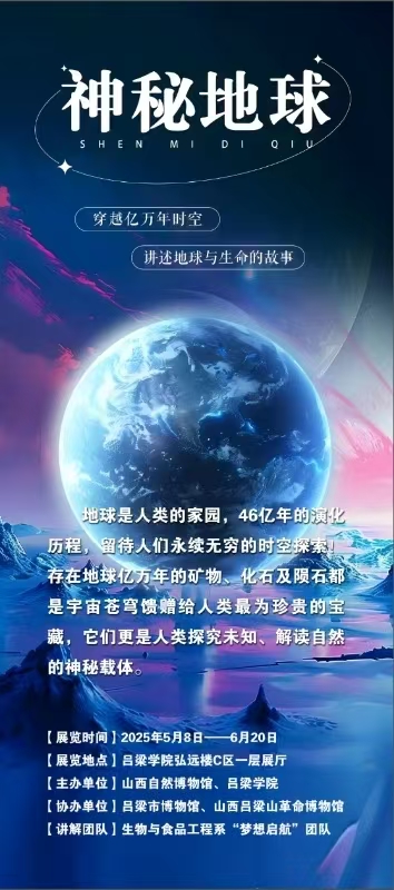 山西自然博物馆,作为省内唯一一座自然类地学博物馆,积淀了丰富的典藏标本和古生物化石,馆藏近1.5万件标本,涵盖地学各个领域。为引领公众深入地矿世界,亲近自然之美,吕梁学院携手山西自然博物馆、吕梁市博物馆共同推出“神秘地球”展览。