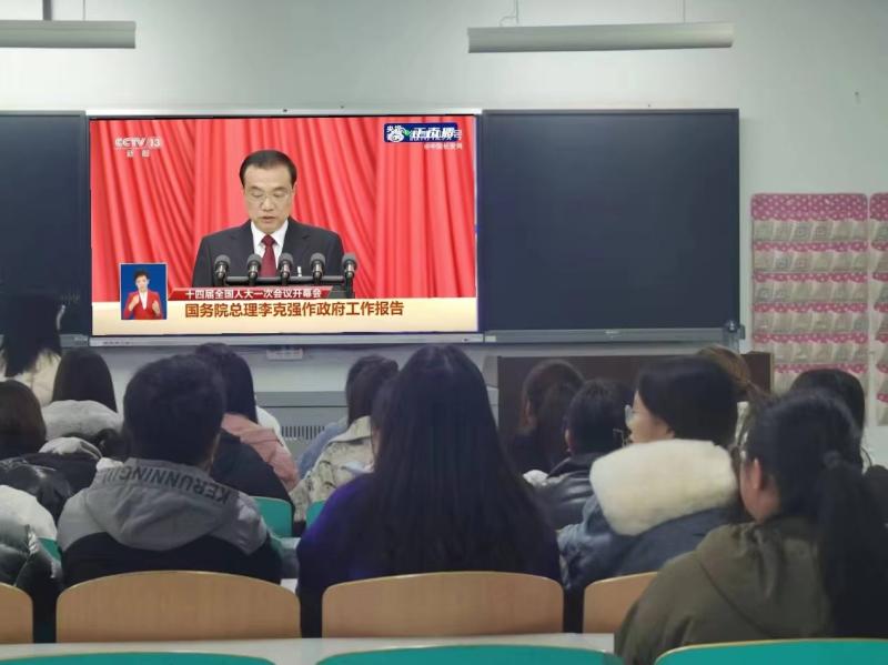 3月5日,第十四届全国人民代表大会第一次会议在北京人民大会堂隆重开幕。习近平等党和国家领导人出席大会。国务院总理李克强作了政府工作报告。师生第一时间通过多种途径收听收看开幕会,热议习近平总书记在全国两会期间的重要讲话和政府工作报告。