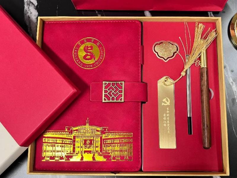 专属纪念品包含附有吕梁学院标志性建筑逸夫楼的定制党员笔记本和标有“前程似锦”四字的生命科学系党总支定制书签等全套礼盒以及定制夜灯。一支笔、一支书签、一个笔记本、一盏夜光背景灯是寓意着每一位毕业生都能弘扬校训“弘毅行知”精神,书写好自己的美好人生之路,希望我系毕业生党员徜徉书籍海洋也能时刻铭记入党初心。