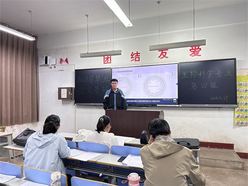 为学习贯彻习近平新时代中国特色社会主义思想主题教育,落实主题教育的根本任务,坚持学思用贯通、知信行统一,努力在以学促干方面取得实实在在的成效。2023年5月27-28日,生命科学系本科毕业论文答辩在一区教学楼开展,生物科学、园林、食品科学与工程、食品质量与安全四个专业365名同学共17个小组参加了此次答辩。