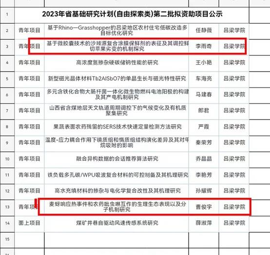近期,山西省科技厅网站公布了2023年度山西省基础研究计划(自由探索类)第二批项目评审结果,我系共获批立项2项。我系对荣获本次基金项目资助的2位项目负责人表示衷心祝贺!
