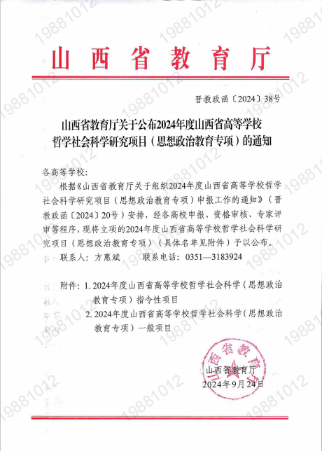 近日,山西省教育厅公布了“2024年度山西省高等学校哲学社会科学研究项目(思想政治教育专项)”立项名单,我系尹鸿飞老师主持,苏娟娟,李军,覃治华,乔付杰几位老师参与的项目《新时代大学生群体积极社会心态培育研究》成功获批哲学社会科学(思想政治教育专项)一般项目。