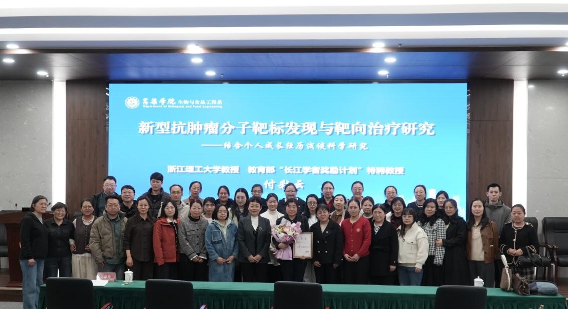 202541日下午,浙江理工大学付彩云教授应邀在弘智楼八楼会议室为生物与食品工程系师生做了题为新型抗肿瘤分子靶标发现与靶向治疗研究-结合个人成长经历浅谈科学研究的主题讲座。讲座由生物与食品工程系主任冯彩平教授主持。