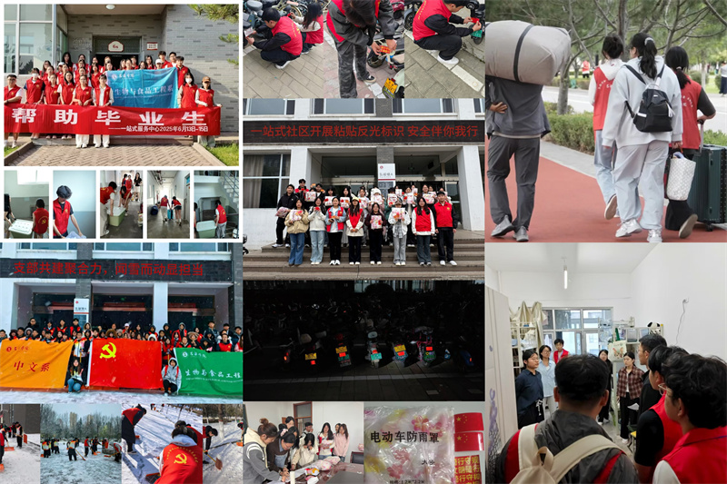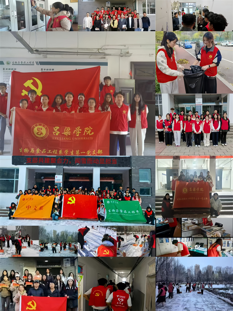 校园服务现场,学生党员冲锋在前,响应学校校园环境建设与新生培养要求,2025年9月7日以“先锋领航换新颜,喜迎开学启新程”为主题开展办公室环境整治;9月23日推动党代表进驻新生班级,实现社区服务与新生帮扶双管齐下;11月1日组织校园环境卫生清扫活动;12月15日联合中文系开展“支部共建聚合力,闻雪而动显担当”冬日除雪活动,在劳动中践行奉献精神,为建设美丽校园贡献党员力量。