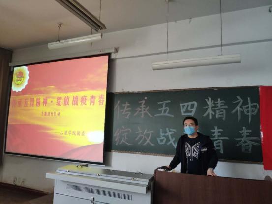 猝不及防的新冠疫情像海啸般席卷整个中华大地,面对汹涌的疫情,政府采取了坚决有力的行动,小区封闭、村庄封闭、集市关闭、商铺关闭……。因为第一时间采取了高水平的防疫措施,我国抗疫工作已经进入了新阶段,形势得到很大好转,但仍不能掉以轻心。境外输入性病例、无症状感染者等依然是我们面临的重大考验。在严峻的疫情防控背景下,为进一步加强疫情期间学生的思想政治教育力度,弘扬五四精神,生命科学系分团委于2020428日上午在一区301教室召集生命科学系团委书记刘泽鑫老师、生命科学系老师代表—刘奥强老师、乔付杰老师尹鸿飞老师和其他全系校学生积极主动开展了“传承五四精神、绽放战疫青春”主题团日活动。本次活动由乔付杰老师主持,学生代表李超越同学进行了发言,生命科学系分团委书记刘泽鑫老师对参会同学开展了主题团课,活动最后全体师生起立合唱中国共青团团歌《光荣啊,中国共青团》,并重温入团誓词。