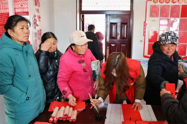 这种接地气、聚人气、有活力的送文化活动得到了当地村民的热烈欢迎。大家一边欣赏一边讨论春联的意蕴,领略书法的魅力。一幅幅大红春联和福字在村里立即成了抢手货。展现了新时期农民群众奋进向上的精神风貌,抒发了迎祥纳福的美好愿望和对幸福生活的美好向往。