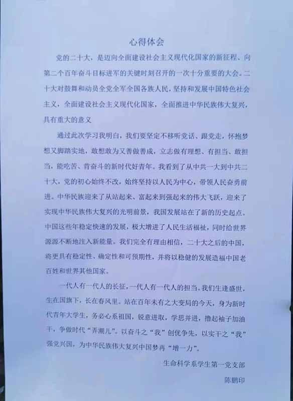 活动结束后,大家纷纷书写了自己的心得体会,深刻领会党的二十大精神。我们要怀抱梦想又脚踏实地,敢想敢做,又善做善成,立志做有理想、敢担当、能吃苦、肯奋斗的新时代好青年,让青春在全面建设社会主义现代化国家的实践中绽放绚丽之花!