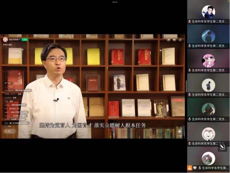 2023年7月1日,生命科学系学生第一、二党支部线上组织全体成员观看以《“铸魂增智育新人,正风促干书新篇”》为主题的高校示范微党课第六讲。跟随学习来自北京理工大学“悟学深思强党性 夯实堡垒建新功”,中央音乐学院“传承中国精神 凝聚奋进力量”,华东师范大学“真理的力量马克思主义中国化时代化的传承与启示” ,华南理工大学“传承红色基因 筑牢青年之魂”,西安电子科技大学“赓续红色基因用党的创新理论铸魂育人”五所高校的师生代表的主题党课,围绕学习贯彻习近平新时代中国特色社会主义思想主题教育和重要讲话精神,讲述高校师生勇担时代使命、服务国家战略、投身强国伟业、贡献青春力量的奋进故事,让青春之花绽放在祖国最需要的地方。主讲人通过鲜活的事例、深刻的感悟讲述了新时代高校牢记习近平总书记的殷切嘱托与殷切期待,始终坚持立德树人的根本任务,积极推进特色兴校,发挥综合学科优势,推进高水平科技自立自强发展,用党的创新理论武装师生,确保学校始终成为坚持党的领导的坚强阵地,培养社会主义建设者和接班人的坚强阵地,培养堪当民族复兴重任的时代新人。