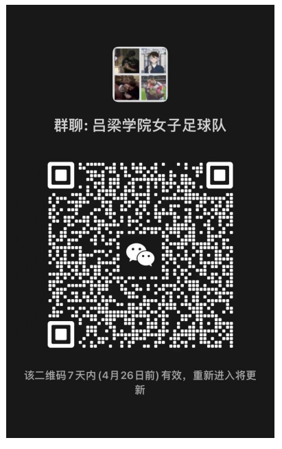 我校要组建女子足球队,如今向所有大一学生进行纳新,选拔出一部分同学进行训练,训练后将去校外比赛,有兴趣的同学可以进下面的微信群: