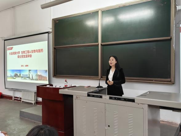 中午10点半,宣讲会正式开始。金黎明教授首先展示了大连民族大学的校园风貌和办学特色。作为国家民族事务委员会直属高校,大连民族大学在生物工程领域拥有雄厚的师资力量和完善的科研平台。