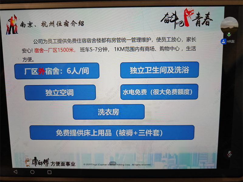 虽在晚间举行,但同学们热情不减,早早进入线上会议室等候。宣讲会上,赵亮经理首先回顾了康师傅集团的发展历程与企业文化,生动阐述了其作为民族品牌在食品安全、产品创新及可持续发展方面所秉持的高标准与坚守。他重点介绍了集团面向高校毕业生的“梦想研修班”等实习就业计划,详细说明了实习岗位需求、工作内容、培养体系以及未来的职业发展通道。