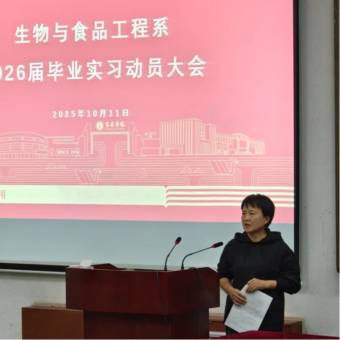 2025年10月11日下午16:30,生物与食品工程系在1C201教室举行了2026届毕业实习动员大会,会议成员有系领导班子、22级班主任、辅导员、各专业负责人以及26届全体毕业生(包括24级专升本的同学)。此次大会旨在为即将步入实习岗位的学子们提供全面的指导和激励。
